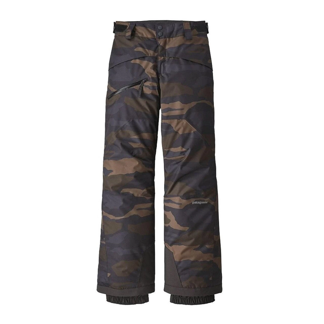 The Patagonia Boy’s Snowshot Pants are a nice Camo Ink black colour with great insulation and water-repellent material to help keep your kids comfortable and warm!