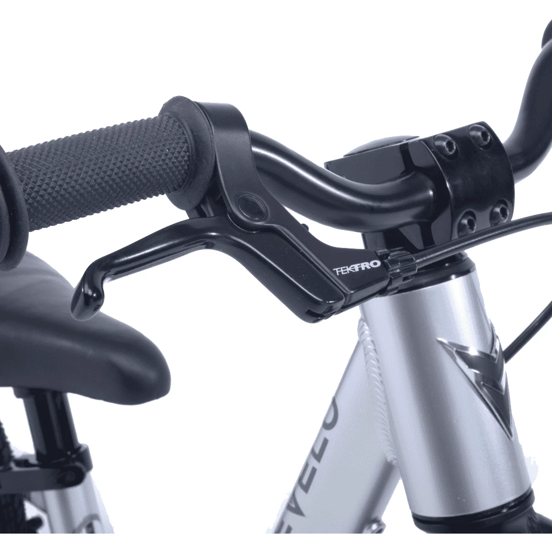 COMPONENT SPECIFICATION FRAME 6061 heat-treated aluminum alloy custom formed tubing FORK Aluminum alloy blades with Chromoly steerer tube -35mm rake SEAT CLAMP Aluminum alloy with tool-less adjustment REAR BRAKE Tektro aluminum V-brake REAR BRAKE LEVER Tektro aluminum short reach HEADSET 1 1/8″ threadless RIM Aluminum with ground sidewalls FRONT HUB Lightweight alloy 1-piece forged CNC with low profile rounded hex bolts REAR HUB Lightweight alloy 1-piece forged CNC with low profile rounded hex bolts TIRE & TUBE Kenda 12 x 1.75 SADDLE Prevelo balance bike-specific saddle HANDLEBAR Prevelo Aluminum – 375mm wide x 50mm rise – 22.2mm to 19mm taper HANDLEBAR STEM Aluminum 30mm extension GRIP Kraton rubber