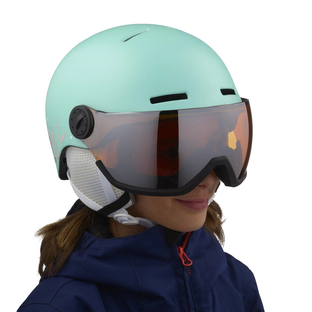 The Salomon Grom Visor Ski and Snowboard helmet have a built-in visor that can be easily adjusted with gloves or mitts on. Raise and lower depending on the conditions and never lose googles again. These are a great alternative if your child wears glasses or hates the tight feeling of goggles on their face! An adjustable speed-dial will help dial in the perfect fit!