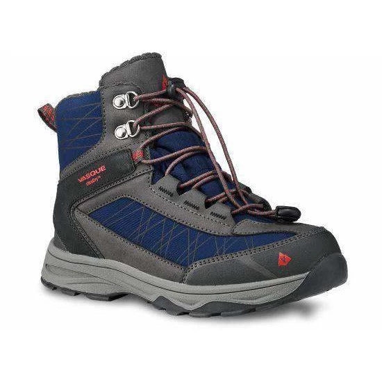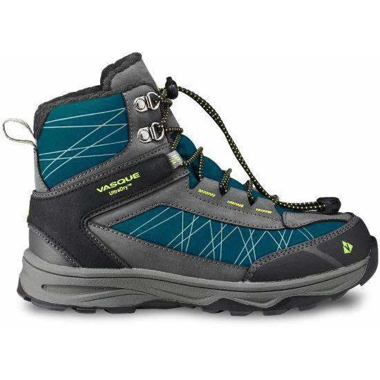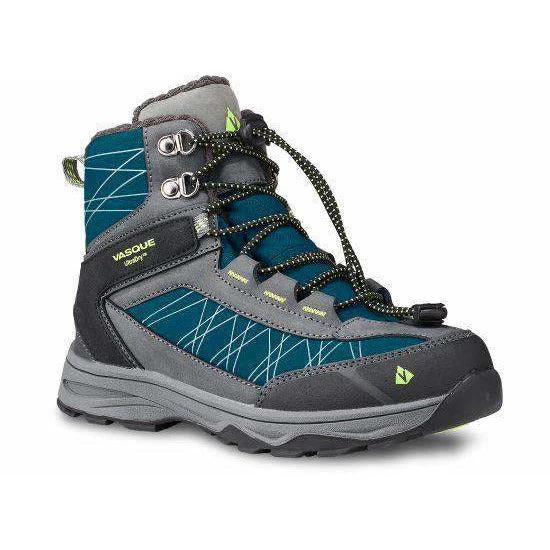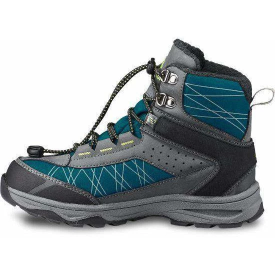 The Vasque Kids Coldspark UltraDry Winter Boot is great for the active little outdoor enthusiast. 200g Insulation, and the UltraDry waterproofing system makes for a comfortable happy little tike. A rubber Yolk stabilizes the heel and provides a great lock for a snowshoe binding strap. Speed lacing loops and d-ring eyelets at the top of the collar make it easy to adjust for cold fingers.